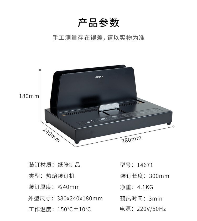 得力14671热熔装订机A4全自动小型家用办公胶装机封套装订财务凭